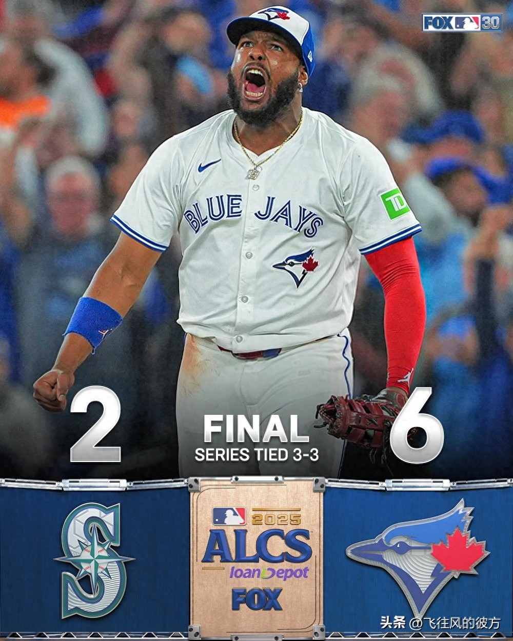 In the sixth game of the MLB American League Championship Series, the Toronto Blue Jays, playing with their backs against the wall, took advantage of Seattle Mariners’ mistakes by delivering clutch hits and maintaining impenetrable defense to hold off scoring threats, securing a 6-2 victory and extending the series to a decisive seventh game.