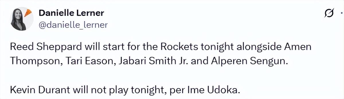 On October 7th Beijing time, the Rockets take on the Hawks to kick off the preseason. Udoka mentioned that the new recruit Durant will rest for this match but is anticipated to make his first appearance on October 9th (Beijing time) versus the Jazz. The Rockets’ starting lineup for the opener includes Shepherd, Amen Thompson, Eason, Jabari Smith Jr., and Sengun.