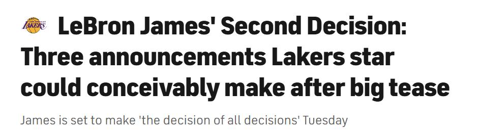 James’s recent ads and partnerships have all centered on the theme of “future retirement,” and this announcement will likely be no different. The content may reveal a new partnership with an automotive brand or an Amazon campaign, so some will surely be disappointed by the outcome.Interestingly, since his “retirement news” has been used repeatedly for advertising hype, when James truly announces retirement in the future, some people might not believe it unless there is widespread media coverage.