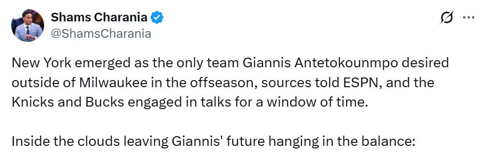 League sources revealed that the Bucks received inquiry calls from the Knicks about Giannis, and the two sides communicated for a period in August but ultimately failed to reach a trade agreement.It was reported that the Bucks explicitly told the Knicks they preferred not to trade Giannis; internally, the Bucks felt the Knicks did not present a sufficiently serious offer to justify further negotiations. It remains unclear how the Bucks would respond if the Knicks pursued aggressively. An insider familiar with the talks described this several-week dialogue as an “exclusive negotiation window.” The Knicks, however, believe the Bucks never seriously considered trading Giannis.