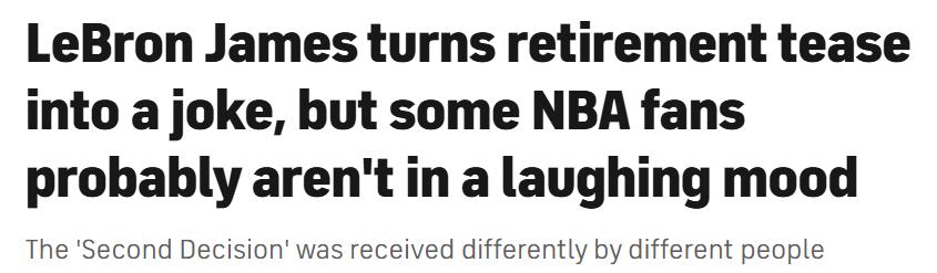 LeBron has always enjoyed being the center of attention, and he will certainly play the “I might retire” card, perhaps for a long time to come.But one day—maybe tomorrow, maybe next week—he will have to face the reality. When that time comes, for many people, it will no longer be a joke.