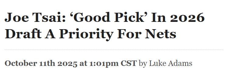 What Tsai mentioned is not news to Nets or NBA fans. The Brooklyn Nets were the only team this summer with significant salary cap space, yet they didn’t use it to acquire ready-to-play talent aiming for immediate wins. Instead, they took on contracts other teams wanted to avoid and continued stockpiling draft picks. Currently, the roster includes five first-round rookies, and in the coming months, the Nets will prioritize player development over winning games.