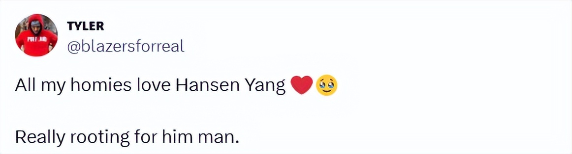 Trail Blazers fan Tyler added: "All my brothers love Yang Hansen and are cheering for him!"