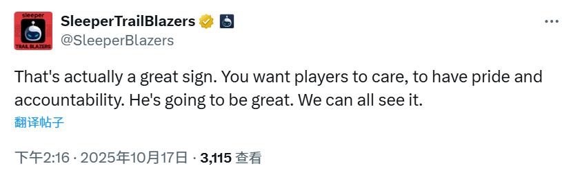 Portland Trail Blazers fan account SleeperTrailBlazers said: "This is actually a very positive sign. You always want players to be genuinely invested, have pride, and take responsibility. He’s definitely going to become outstanding, we all can see that."