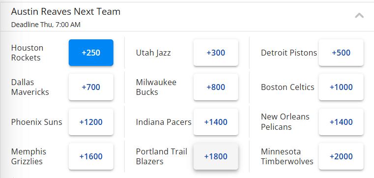 But what if Reeves and the Lakers fail to reach an agreement and he ends up leaving the team? The latest odds show the Rockets (+250) as his top favorite next team, followed by the Jazz, Pistons, Mavericks, Bucks, Celtics, and others.