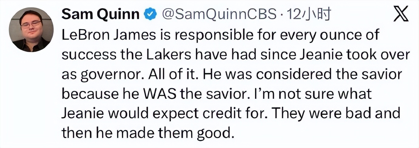 CBS reporter Sam Quinn commented: “Since Jeanie Buss took over the Lakers’ management, every bit of success the team has achieved is thanks to LeBron James, completely. He is seen as the savior because he is the savior. I can’t understand why Jeanie Buss would think she deserves credit when the Lakers were a mess before—LeBron is the one who brought them back to greatness.”