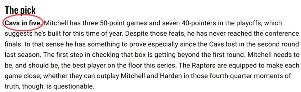 Official Website Prediction: Cavaliers Eliminate Raptors 4-1