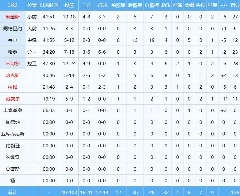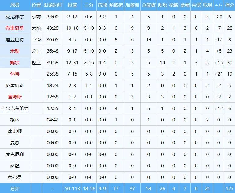Ball aggressively shot 12 out of 31 attempts, resulting in 30 points, 5 rebounds, and 10 assists; the super rookie Kneiper failed to perform at the expected level, shooting 2 out of 12 for only 6 points, 5 rebounds, and 1 assist, with a plus-minus of -20, the lowest in the game.