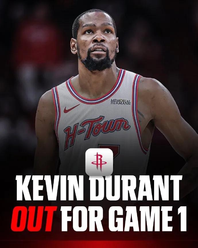 Durant actually missed the Rockets vs. Lakers G1 due to a right knee contusion. Rockets coach Udoka provided detailed explanation, stating Durant was hit above the knee patellar tendon during team training, the injury area is very painful & mobility is limited.