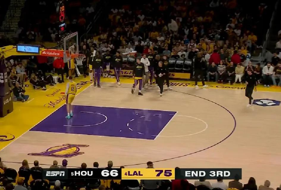 After the third quarter, the Lakers' lead expanded to 9 points, this basically equates to securing the victory, as mentioned the Rockets without KD leading the offense have extremely limited comeback ability.