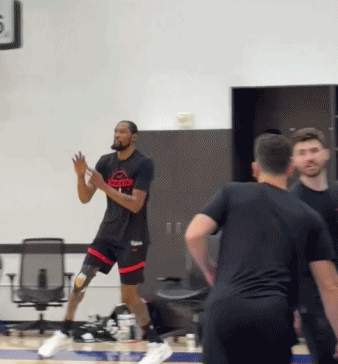 This star forward missed Sunday's first playoff game due to a right knee contusion suffered in training last Thursday, and the Rockets also lost this opening game. During the brief media-open portion of training, the 37-year-old star appeared largely back to normal: he completed jump shots, ran back-and-forth, changed direction, and his movements did not appear significantly restricted; he smiled throughout.The only noticeable difference was on his right knee: Durant's knee was wrapped with protective tape secured by athletic tape.