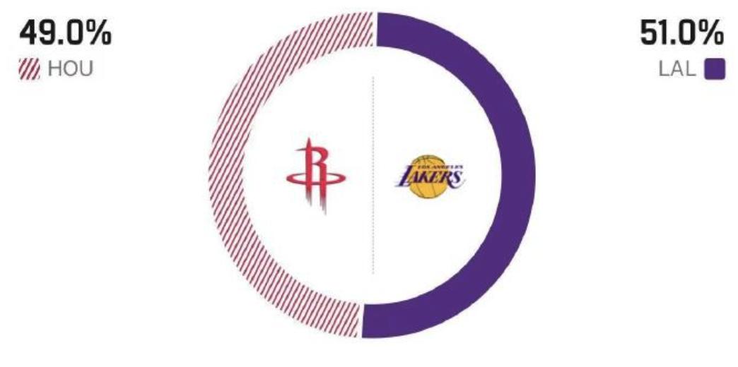 ESPN predicted the win probabilities for both sides in Lakers-Rockets Game 2, with the Lakers at 51%. It can be said, another evenly matched game, expected to be decided within the last 5 minutes of the fourth quarter.