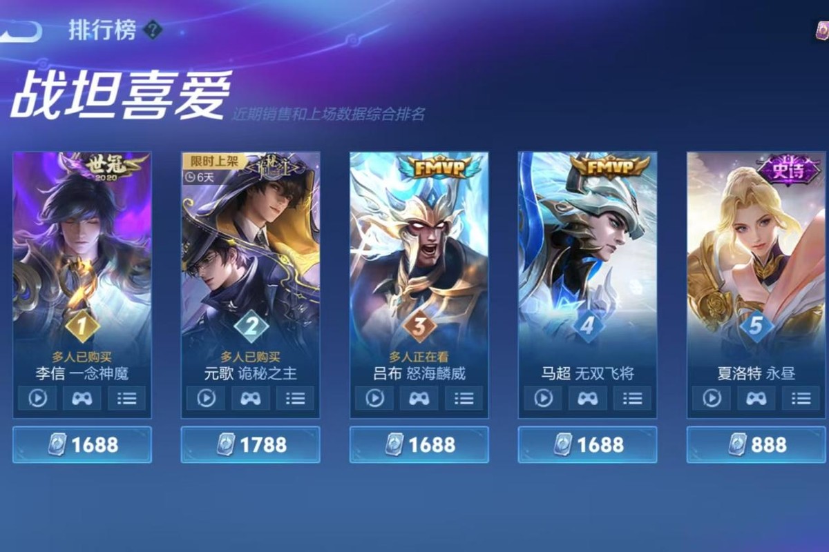 The top five favorite fighter/tank skins are: Li Xin’s Divine Demon Thought, Yuan Ge’s Mysterious Lord, Lu Bu’s Furious Sea Scale, Ma Chao’s Peerless Flying General, and Charlotte’s Eternal Daylight. After many years, the most favored skin among offlane players remains Divine Demon Thought, an unbeatable masterpiece. This skin’s effects are taken to the extreme, with three forms making it a top-tier legendary skin. Players love it deeply, and even the later released annual skin Shanhai·Blazing Frost Slash struggles to surpass its status.