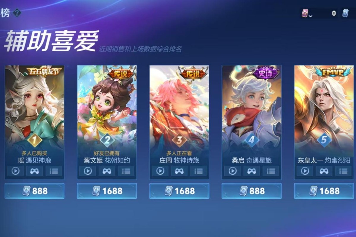 The top five favorite support skins are: Yao’s Meeting the Divine Deer, Cai Wenji’s Flower Morning Promise, Zhuang Zhou’s Shepherd’s Poem Journey, Sang Qi’s Adventure Star Journey, and Dong Huang Taiyi’s Blazing Sun. The most popular, as expected, is Yao’s Meeting the Divine Deer, which is considered a classic skin in King of Glory. Yao is very popular, arguably the top support hero, and this collaboration skin with cultural elements is highly loved by many players.