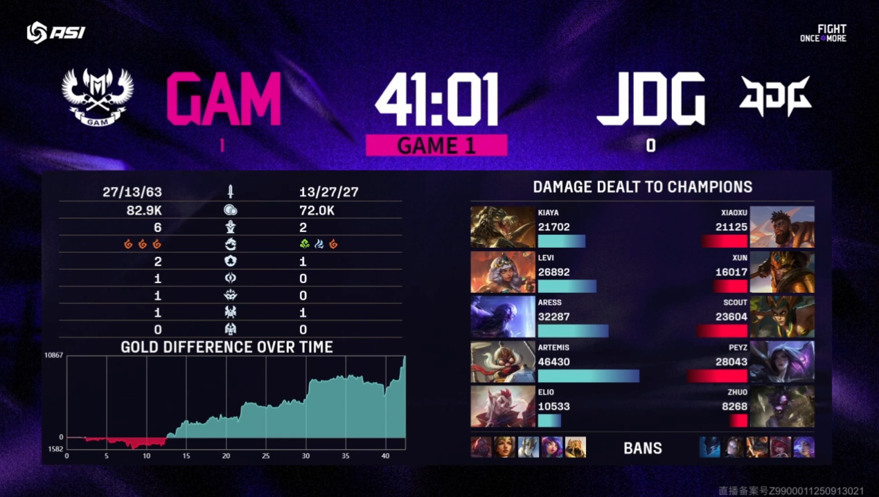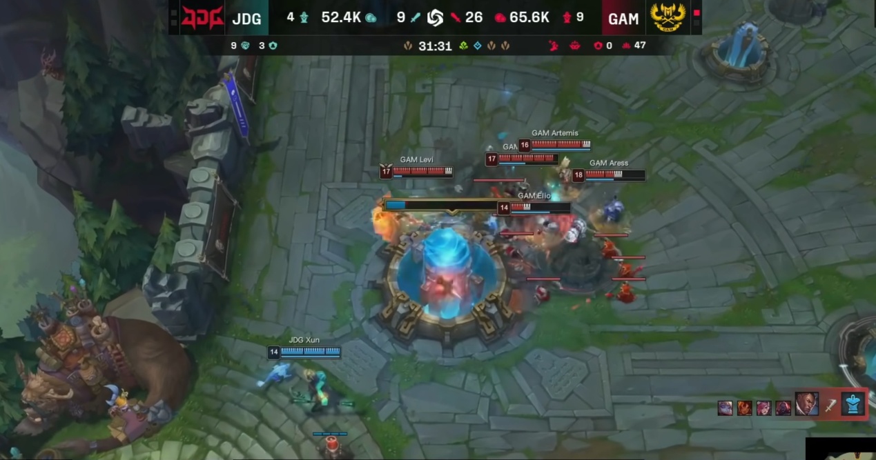 In the late game of that match, JDG did fight back in team fights, but it was basically the typical turn-based exchange seen often in the LPL — you win a fight, I win a fight — until GAM secured the Dragon Soul in a decisive team fight to end the game.