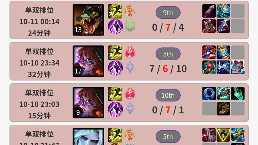 This year’s World Championship is hosted locally, so players have been training intensely on the Summit of Power. BLG’s top laner Bin’s recent ranked match record is quite "impressive." From the 10th to the 11th, Bin played 10 ranked games but only won three. In one game with Aurelion Sol, he was completely dominated by random players. In another playing Renekton, he faced FNC’s top and jungle who relentlessly targeted him, resulting in two games where Bin ended 0-7.