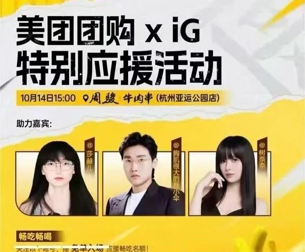 As the competition approaches, IG officially announced their new sponsor. The entry of the food delivery giant thrilled many fans. To maximize hype, IG launched a new support campaign featuring two well-known guests: Umbrella Emperor and Shu Nana. Additionally, the organizers released a hidden photo, which sparked heated discussions across the community. Since this was an offline support event, the official invitation of cross-dressing Faker Shahe'er caused a strong reaction. Shahe'er himself responded in the fan group, which quickly led to widespread online criticism.