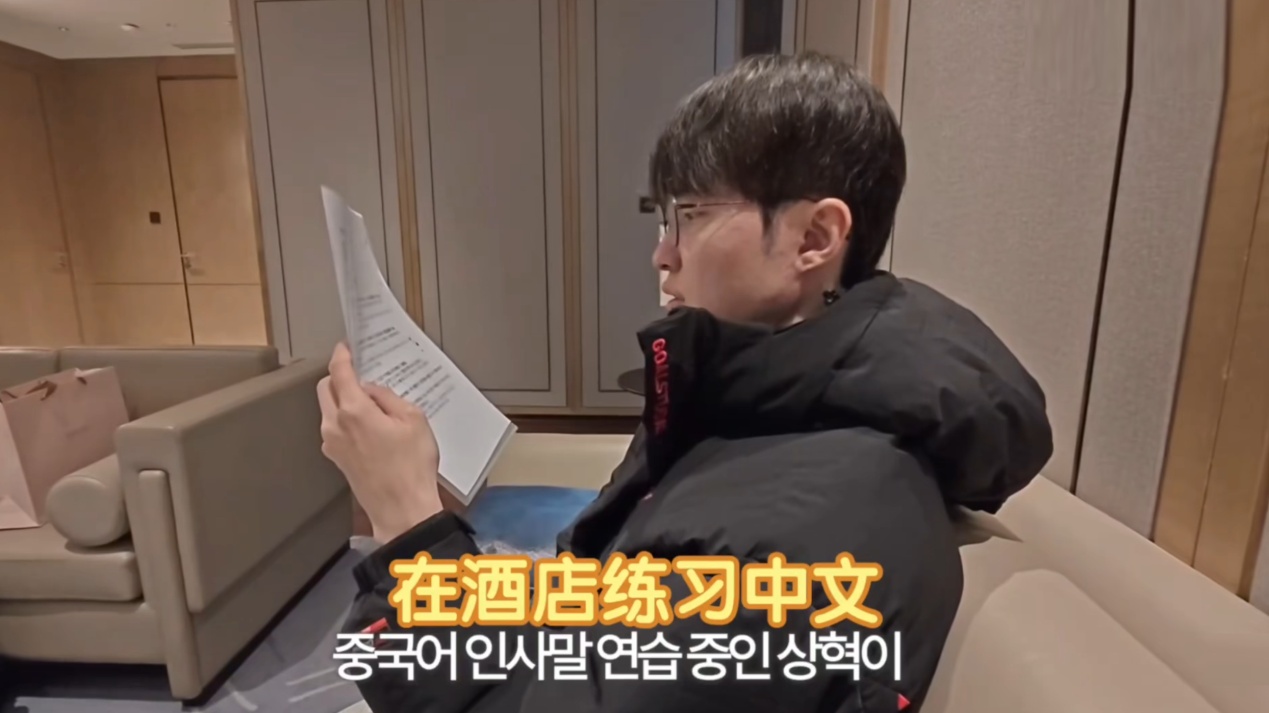 Many fans who follow Faker know that he spent a lot of time preparing for his China trip. During downtime, he practiced Chinese pronunciation and prepared numerous scripts with phonetic annotations for each Chinese character. In the fan meeting vlog, he is seen studying the Chinese scripts in the hotel and on the way to the venue.