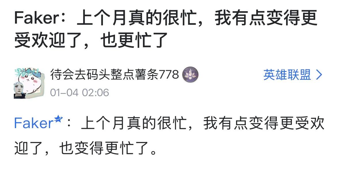 Most players are quite familiar with Faker. As the undisputed number one player in League of Legends, he has maintained a very stable form over the years and even won his sixth World Championship trophy at age 30. Unlike other players, age has not affected his professional skills; if anything, his experience has enhanced his game sense, making those who retire citing age look embarrassed. Faker has participated in many activities recently, and some netizens tracked his entire off-season schedule, finding that he barely rested except for a few days right after the tournament ended.