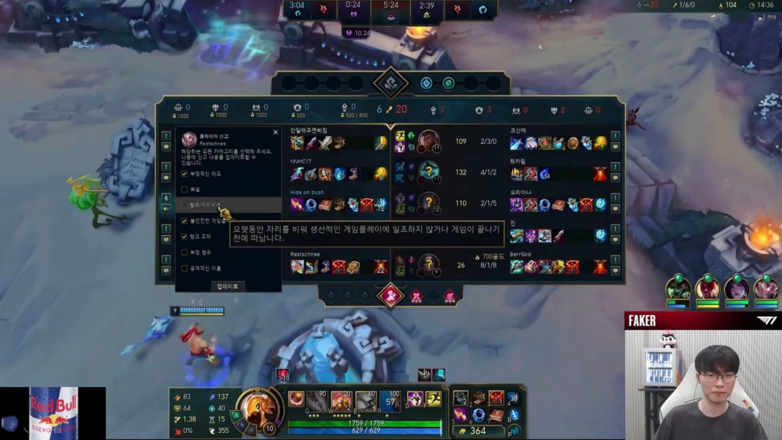 The game ended with an unsurprising surrender. Faker expressed again: I hope he gets suspended. Feather wasn’t the first to be reported this stream. Since Faker resumed streaming, he encounters players AFK in ranked almost daily. But this time, he was genuinely upset. Interestingly, after finishing the first game, Feather appeared again on the opposing team in the second match.