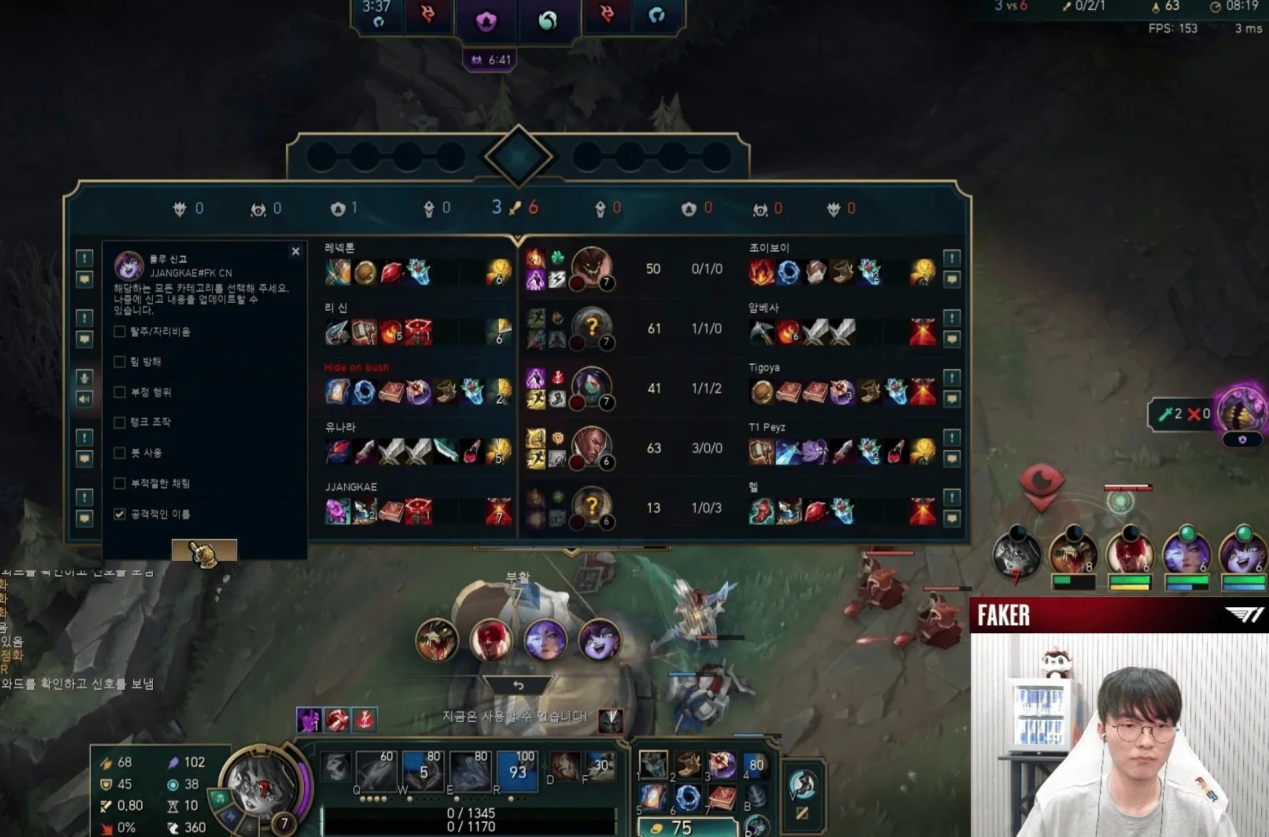 Faker would never tolerate such gameplay, and the interesting part is that after Feather’s punishment, viewers noticed during Faker’s latest live ranked match that he reported another Korean player.