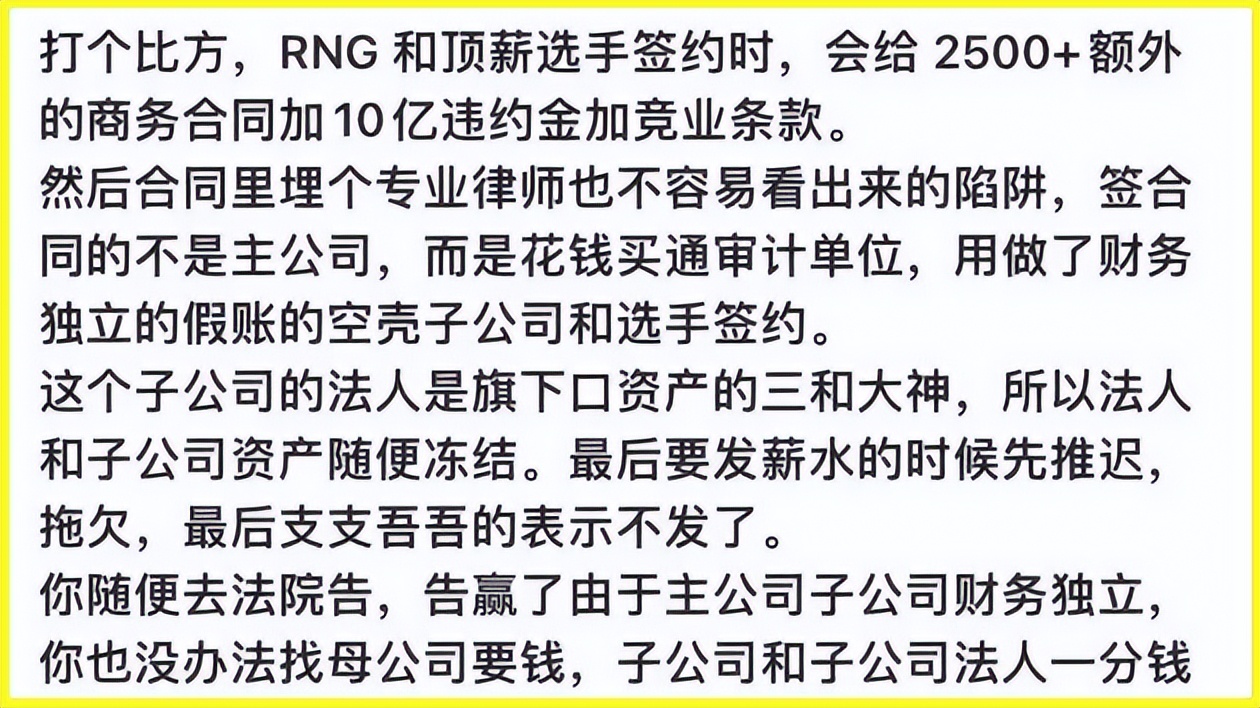 After RNG was removed by the LPL officials, their reputation has plummeted recently. A self-proclaimed insider recently revealed RNG’s contract tricks. When signing players, RNG offers additional commercial contracts, plus non-compete agreements and a 1 billion yuan penalty clause. These contracts contain hidden traps even professional lawyers can’t detect. The strangest part is that the player signs with an empty shell company of RNG.