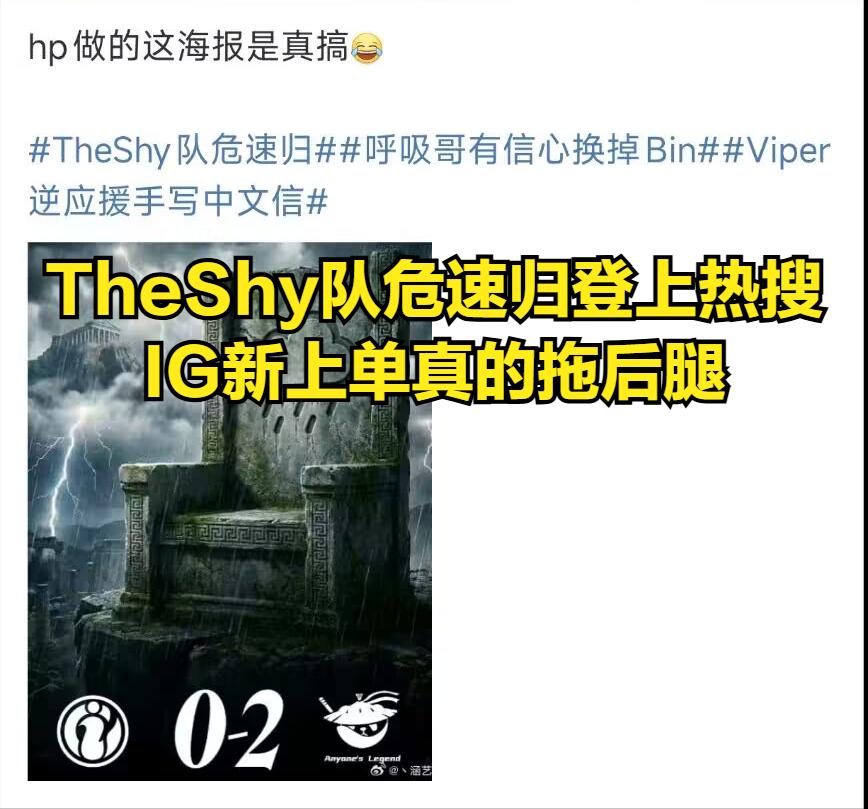 During the match against AL, IG’s new top laner Soboro’s performance frustrated many fans. In this BO3 series, whether playing tank or bruiser champions, Soboro was a weak link for the team. Particularly in the final game, Soboro’s new top lane pick, Yaeheon, was utterly dominated by Saint’s Sion. By the end of the match, Soboro’s Yaeheon had a 0-5 scoreline with no kills or assists. This poor showing made many fans long for TheShy’s return, and the hashtag “TheShy’s urgent comeback” even trended on social media.