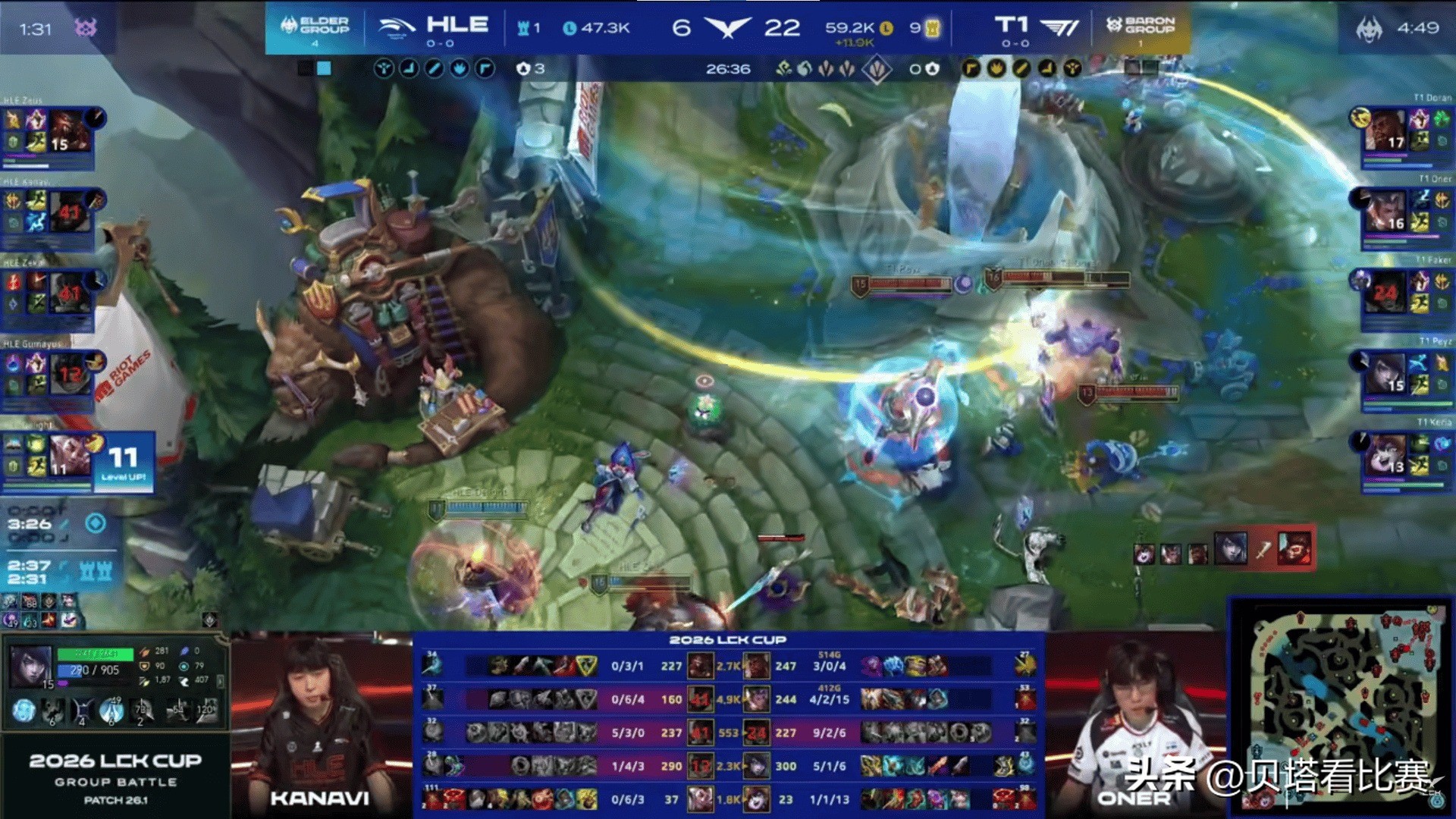At 20 minutes, Doran’s Akali outplayed Kanavi’s Jarvan in a 1v2 duel, while Oner’s Nocturne ult flew mid to kill Gumayusi’s Jhin. Following that, T1 pursued and secured a 3-for-0 fight, taking the first Baron. At 27 minutes, T1 secured the dragon soul watch. Finally, at 28 minutes, T1 initiated a tower dive team fight, killing three HLE members at their base and sealing the match victory.