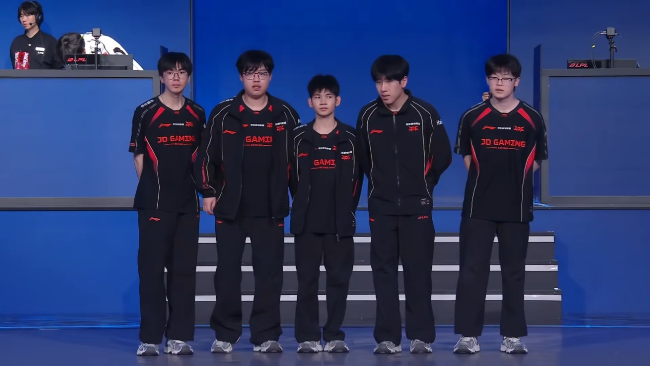 In the first game, JDG prepared a strategy for Tarzan: jungler Junjia aggressively invaded the jungle, teammates helped secure both river crabs, and repeatedly stole Tarzan's F6. Due to JDG's tighter team coordination, specifically restricting Tarzan's rhythm, even Tarzan's most proficient champion Xin Zhao struggled to perform.
