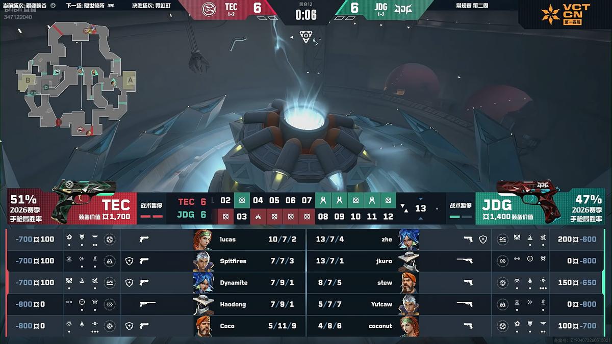 In the twenty-third round, TEC took the lead to reach match point. In the twenty-fourth round, JDG defused the Spike to tie the score, sending the match into overtime.