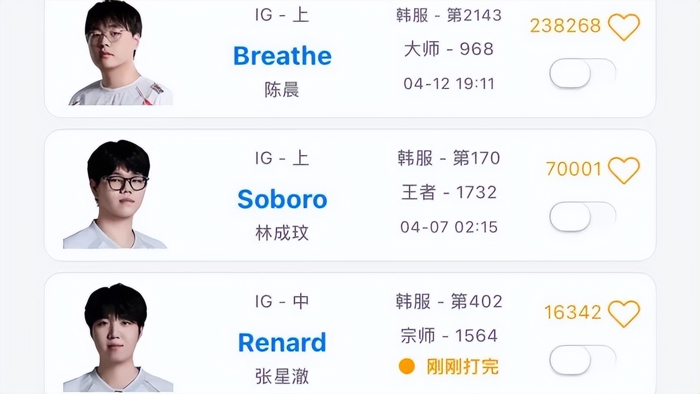 During the same period, none of IG's other members were online; only mid-laner Render was playing games. Typically, this situation means the others are training. Rookie is likely indeed returning. But honestly, changing personnel during a winning streak yields the worst results. Render's performance in these three matches hasn't been problematic. Rookie coming back now to reap the benefits seems inappropriate—what are the management thinking?