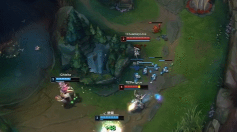 In the first game, Breathe's top-lane Vayne also achieved a solo kill against the Gnar. As TES fell behind, they struggled more and lost further; the team lacked damage, and their aggressive top-lane plays couldn't secure kills. Zuian's Gnar also grew impatient, venturing into the jungle and giving away advantages, allowing IG to easily win the first game.