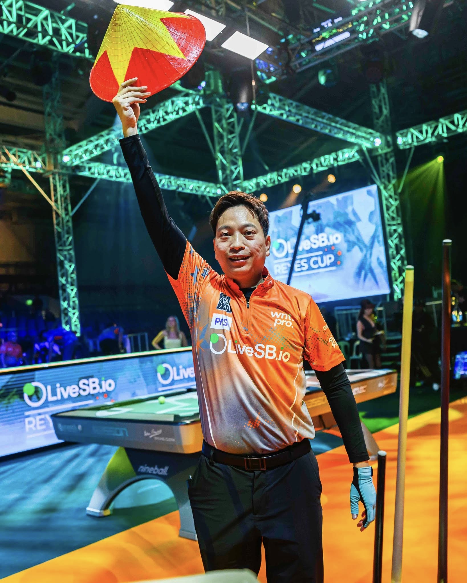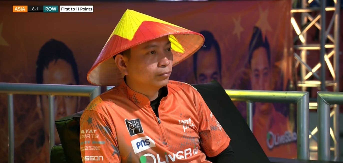 Vietnamese cueist Duong Quoc Hoang decisively defeated Skylar Woodward (USA) 5-1 in the singles match on the third day held today (October 18), bringing the eighth point to Team Asia against the World Team at Reyes Cup 2025. In this match, Duong Quoc Hoang stood out by wearing a conical hat.