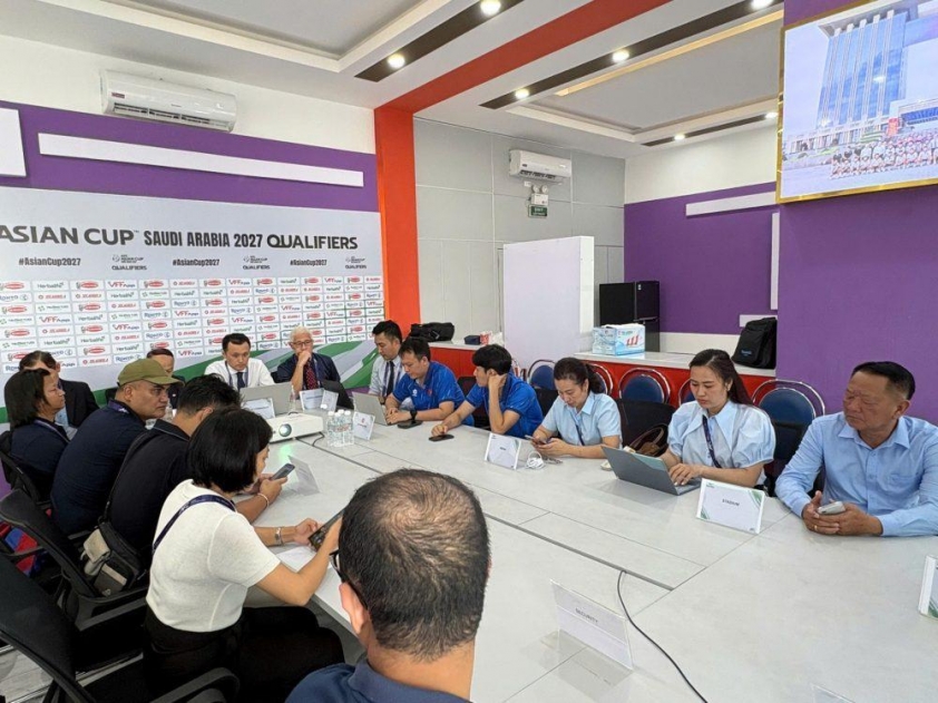 On the afternoon of October 8th, at the meeting room of Binh Duong Stadium (Go Dau), Thu Dau Mot ward, Ho Chi Minh City, a technical meeting was held ahead of the match between Vietnam and Nepal as part of the first leg of the final round of Asian Cup 2027 qualifiers (Group F), scheduled for 7:30 PM on October 9th.