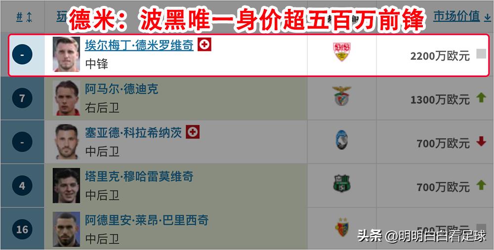 Note: Demirovic is the only Bosnian forward valued over 5 million euros nationwide.