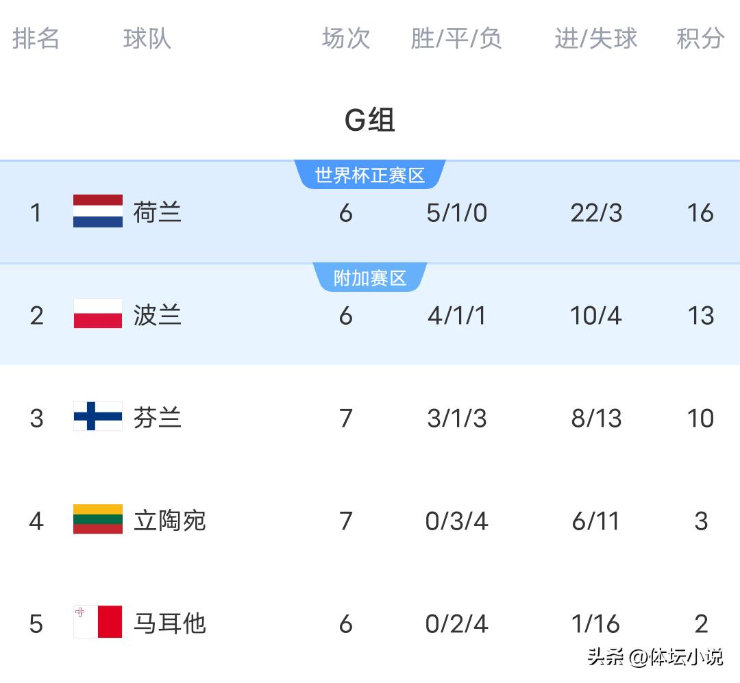 Home>soccerNews> With the Netherlands winning 4-0, the Faroe Islands causing an upset with a 2-1 victory, and Denmark triumphing 3-1, the latest European World Cup qualifying standings have been released. >