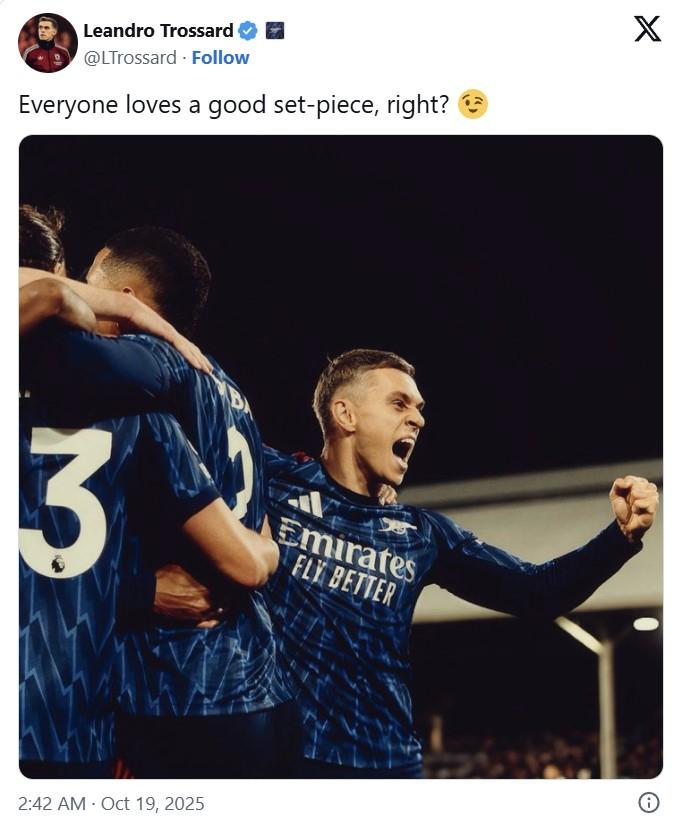 This seemingly simple statement quickly went viral, as fans believe Trossard was hinting at Liverpool coach Arne Slot, who previously mocked Arsenal for scoring too many goals from set pieces.