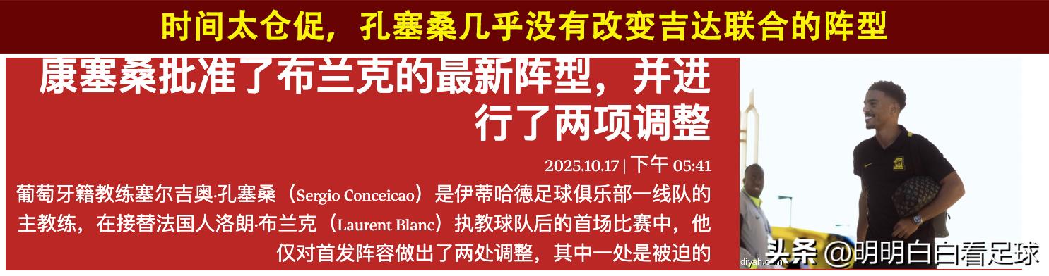 Although the coach has changed,Conceição is still new and adapting,so it’s unlikely he can solve such a tough issue immediately,you can see from the last game that almost no changes were made; it was still Blanco’s tactics and the performance was poor,and now with Benzema absent today, it will probably be even harder.