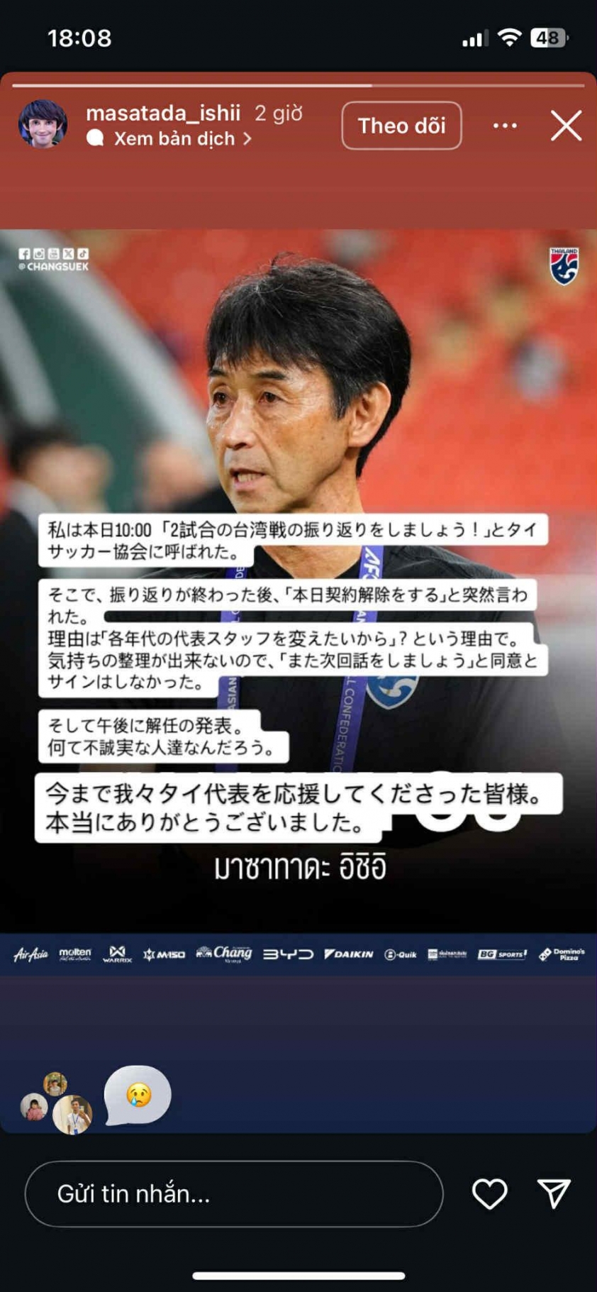 Then in the afternoon, the dismissal notice was issued. They are truly dishonest people. I sincerely thank everyone who has supported the Thailand national team until now,” the Japanese coach stated.