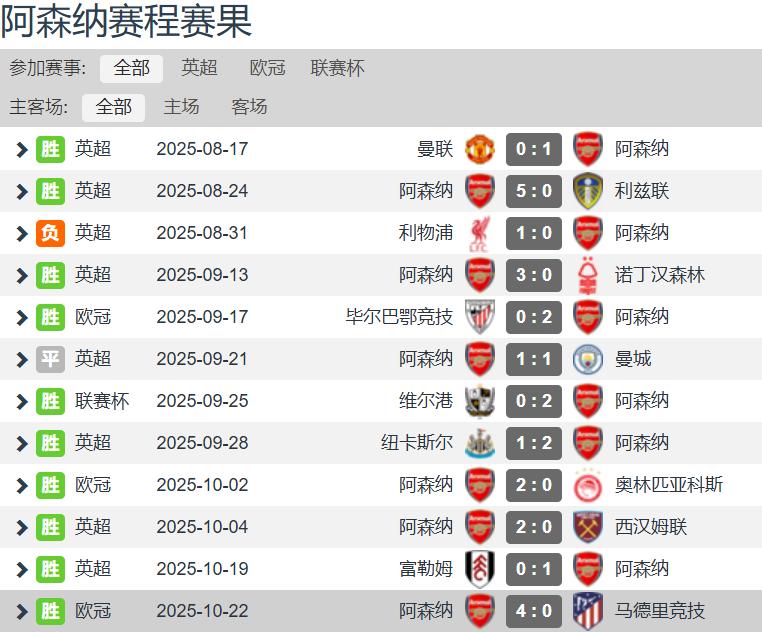 The Premier League is now considered the top league, and Arsenal's defense stands as the strongest in the big five leagues. In the third round of the Champions League, Arsenal routed Atletico Madrid 4-0, achieving a dominant win and a shutout. Atletico, known for their 5-2 win over Real Madrid and 5-1 over Frankfurt this season, were held scoreless and conceded 4 goals, highlighting the difference in strength. After this match, Arsenal secured a perfect start to the Champions League with three consecutive wins, ranking third, having scored 8 goals and conceded none.