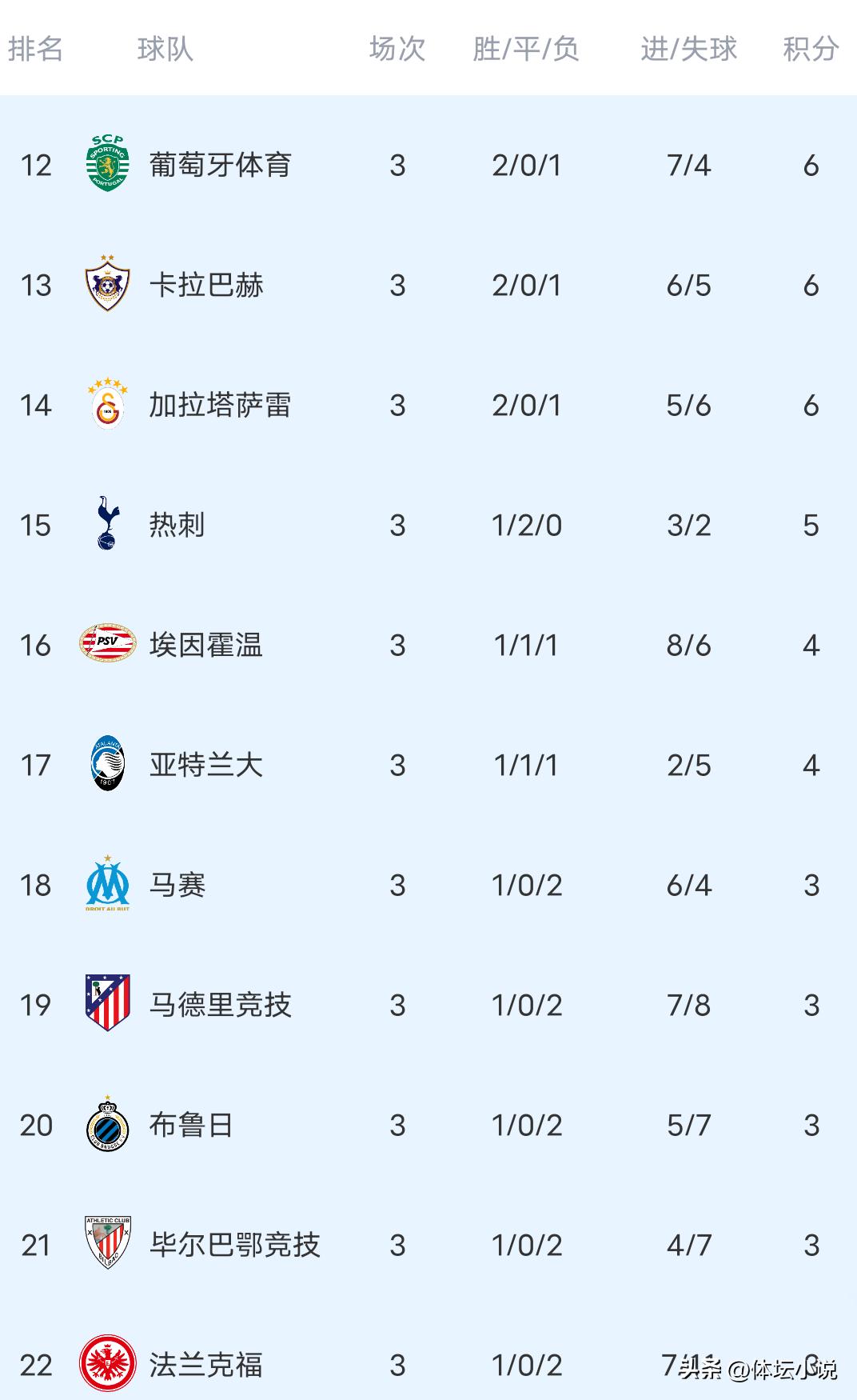 On October 23rd Beijing time, the third round of the Champions League group stage continued with multiple matches finishing early today, producing a chaotic night and several crushing losses. Highlights were Chelsea’s dominant 5-1 win over Ajax, Real Madrid’s tight 1-0 victory over Juventus, Bayern’s comprehensive 4-0 win against Club Brugge, and Liverpool’s impressive 5-1 comeback against Frankfurt. As a result, the updated standings show five teams maintaining perfect records: Paris Saint-Germain, Bayern Munich, Inter Milan, Arsenal, and Real Madrid. Juventus remains winless after three rounds, ranking 25th, while Benfica and Ajax have suffered three straight defeats and sit at the bottom!