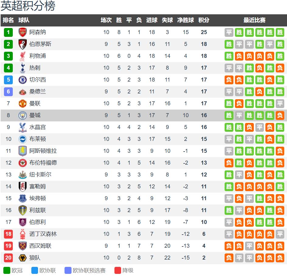 First:Teams’ status! After 9 rounds in the Premier League, Manchester City holds 5 wins, 1 draw, and 3 losses with 16 points, ranking eighth, while Bournemouth stands with 5 wins, 3 draws, and 1 loss, accumulating 18 points and placed second. In the last Premier League match, Manchester City lost 0-1 away to Aston Villa, ending a 9-match unbeaten streak across all competitions. Midweek in the League Cup, they won 3-1 away at Swansea to advance; Bournemouth won 2-0 at home against Nottingham Forest, maintaining an unbeaten streak of 5 wins and 3 draws in their last 8 league matches.