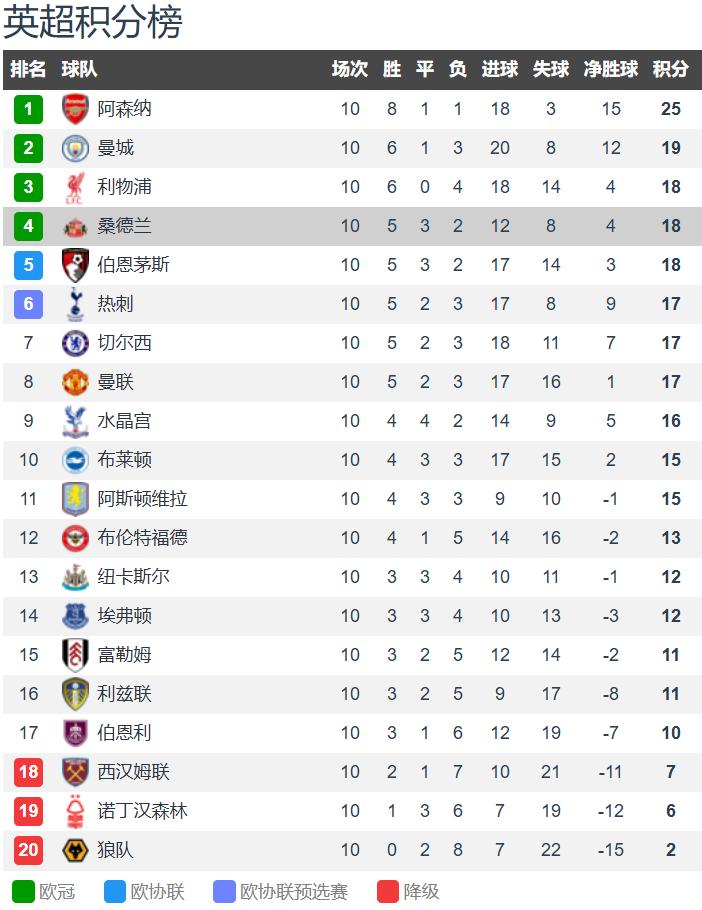 Fans of the Premier League know that in the past two seasons, all three promoted teams were relegated, but this season’s promoted clubs prepared early for a tough survival battle. Especially the “Black Cats,” who quickly became the strongest dark horse. Sunderland signed several key players this season, essentially overhauling their starting lineup, similar to Nottingham Forest last season. With former Arsenal captain Xhaka anchoring midfield, the Black Cats have impressive fighting strength. After 10 rounds, Sunderland has 5 wins, 3 draws, and 2 losses, totaling 18 points and sitting fourth—just one point behind second-placed Manchester City and level on points with third-placed Liverpool. Perhaps no one expected at the start of the season that after 10 rounds, promoted Sunderland would be ahead of the big three clubs Tottenham, Chelsea, and Manchester United!