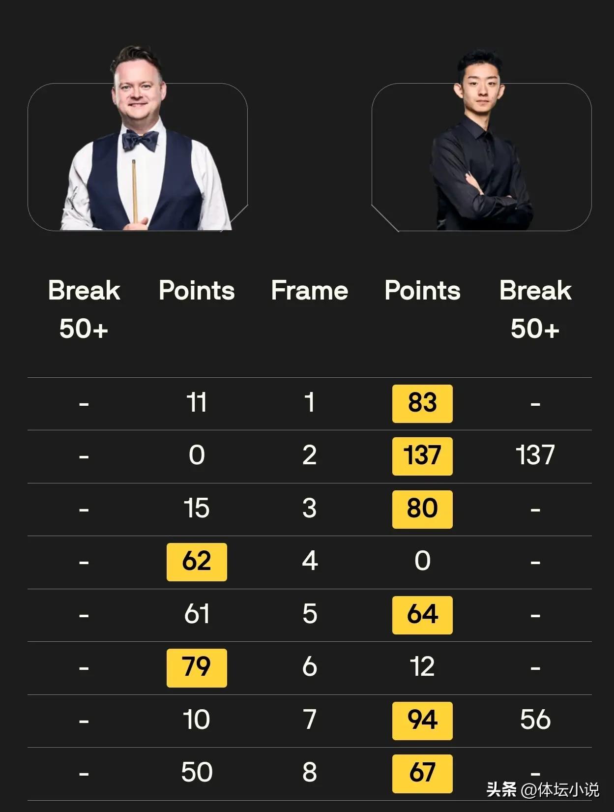 This scoreline is quite surprising. While you might have expected Wu Yize to win, few would have predicted such a decisive margin. The overall quality wasn’t very high, with neither player showing strong single-break dominance, and Murphy’s form was particularly poor, failing to perform at his usual level. Wu’s ability to capitalize on opportunities was key to his win. This marks Wu’s first victory at the Masters, which is highly significant. Let’s hope Wu continues to push for even greater achievements. Keep it up!