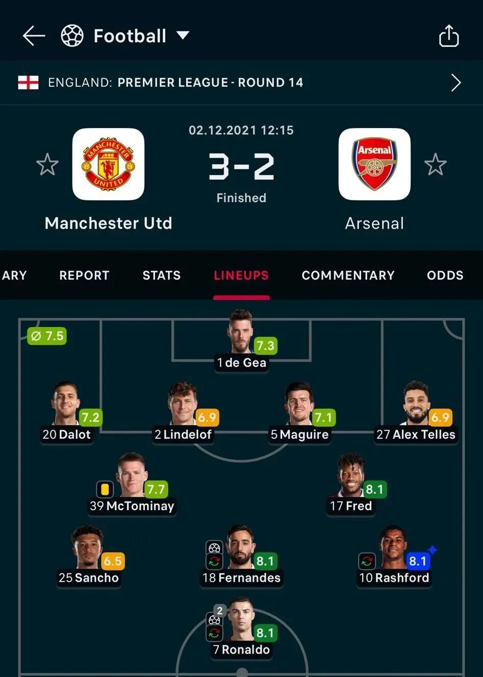 One major issue Solskjaer couldn’t solve before his departure was how to maintain balance in high pressing with Ronaldo back. Ronaldo’s age limits his running capacity, and younger teammates were reluctant to run more. Carrick’s solution targeted Arsenal’s right flank: Ronaldo drifted left to draw out right center-back White, Sancho cut inside, left-back Telles overlapped to provide crosses, and Fred positioned near the box to create a numerical advantage centrally. Ultimately, this tactic earned Bruno Fernandes a decisive penalty.