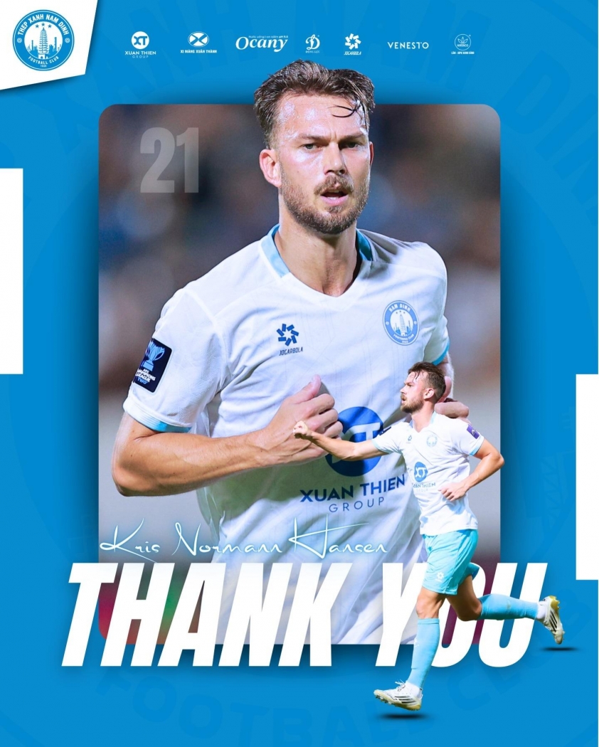 The Steel Blue Nam Định Club officially parts ways with Norwegian midfielder Kristoffer Normann Hansen after a short period together, ending his participation primarily in cup tournaments.