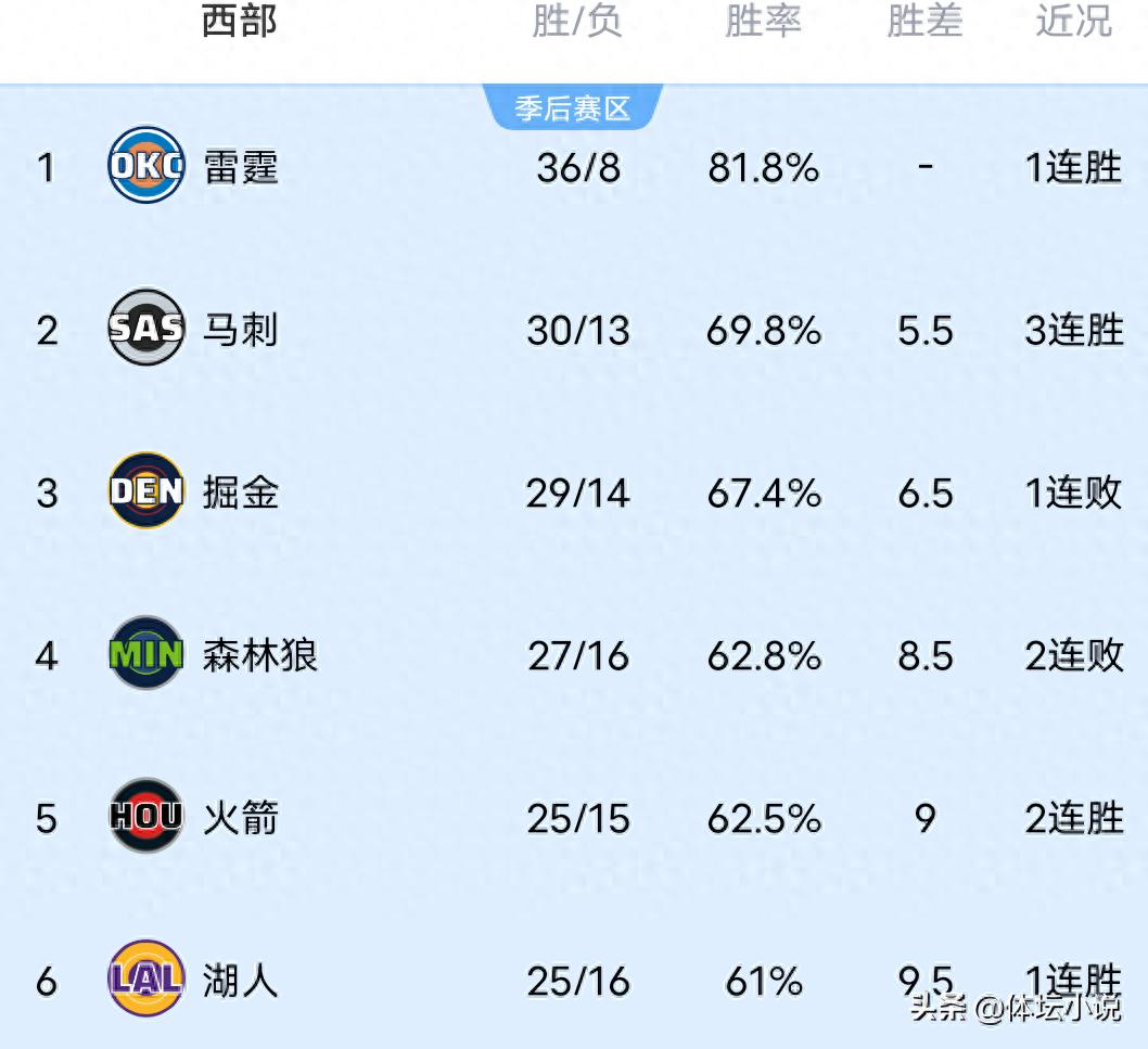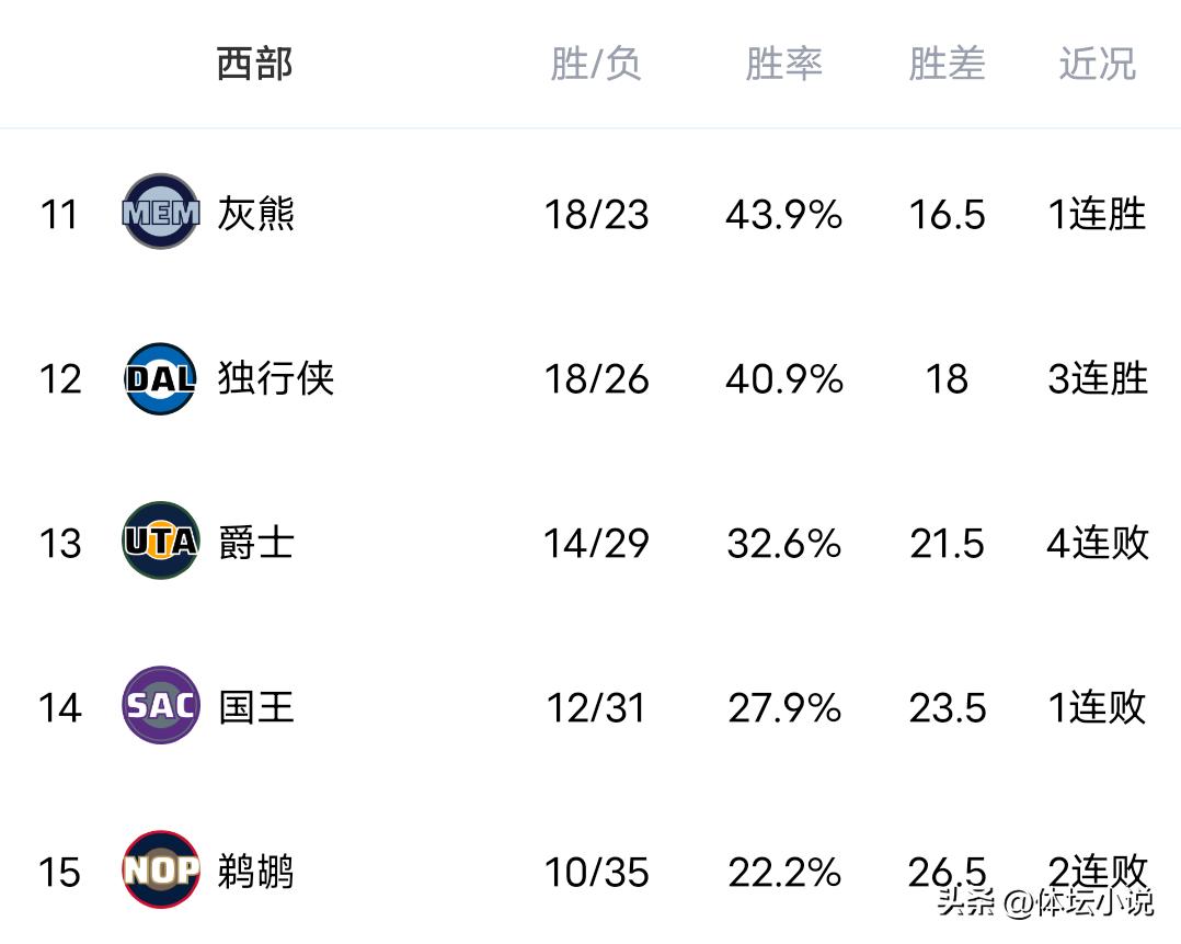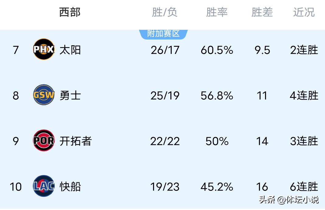On January 21st Beijing time, the NBA regular season continued with several games concluding yesterday. The Mavericks were in excellent form, overwhelming the Knicks 114-97; the Spurs, powered by a breakout performance from Wembanyama, defeated the Jazz 123-110; the Suns easily beat the Nets 126-117; and the Heat were heavily defeated 135-112 by the Warriors who scored from multiple sources. Consequently, the updated Western Conference standings show the Spurs in second place with a three-game winning streak, the Suns at seventh, the Mavericks also on a three-game winning streak at 12th, and the Jazz suffering their fourth straight loss at 13th!