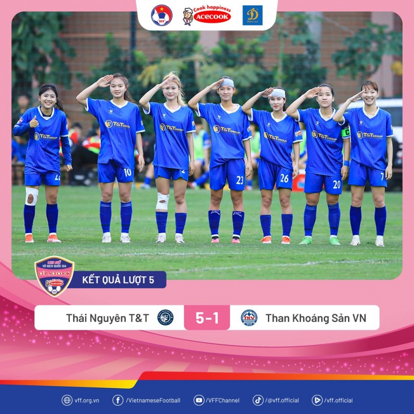 In the second half, Than KSVN scored to reduce the deficit to 1-4 through Phạm Thu Trang. In the 68th minute, Nguyễn Thu Trang scored to seal a 5-1 victory for Thái Nguyên T&T.