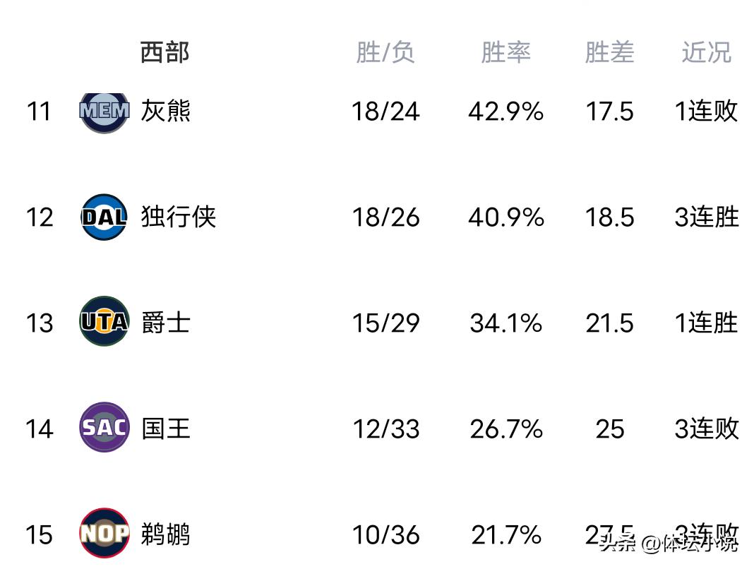 On January 23rd Beijing time, the NBA regular season continued with multiple games finishing yesterday. The Hawks edged the Grizzlies 124-122, the top Eastern team Pistons defeated the Pelicans 112-104, Alexander scored 40 points as the Thunder beat the Bucks 122-102, and the Raptors’ third-quarter surge led to a 122-109 win over the struggling Kings. Consequently, the newest Western Conference standings show the Thunder leading, the Grizzlies at 11th, and both the Kings and Pelicans suffering three consecutive losses, ranking at the bottom two spots.