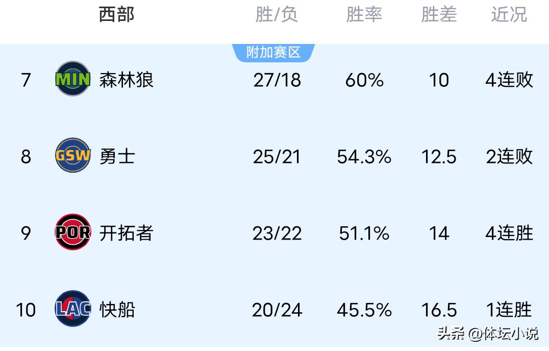 On January 24th Beijing time, the NBA regular season kept heating up with fierce competition. In the three spotlighted games yesterday, the Spurs surged to a commanding 126-109 victory over the Jazz, the Lakers fell 104-122 to the Clippers in the LA showdown, and the Heat were defeated 110-127 by the Trail Blazers, who had six players scoring double digits. Consequently, the newest Western Conference standings have been revealed: Spurs second, Lakers fifth, Trail Blazers riding a four-win streak at ninth, and Clippers tenth!